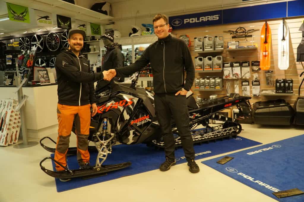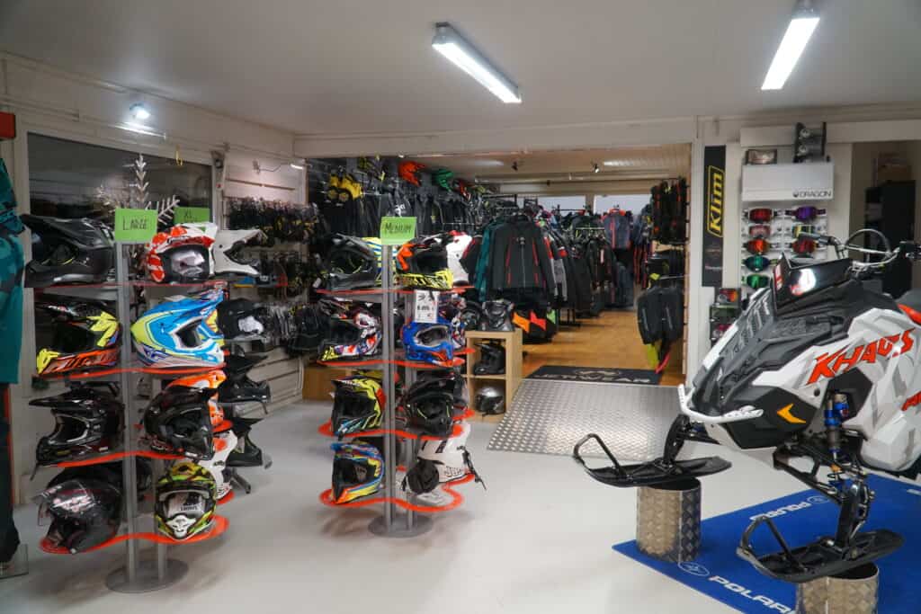 Mellanströms motor är en välfylld liten skoteraffär med massor av kläder och tillbehör för maskiner. Märkena som säljs är Polaris och Arctic Cat. En Nilapulka går även att inhandla här. Väl inne i butiken möttes jag upp Rickard och själva affären gick smidigt som alltid inne hos handlaren. Vi gick igenom vad som är bra att veta och här rätades även lite frågetecken ut. Efter en stunds surrande åkte jag iväg lycklig med min nya skoter.