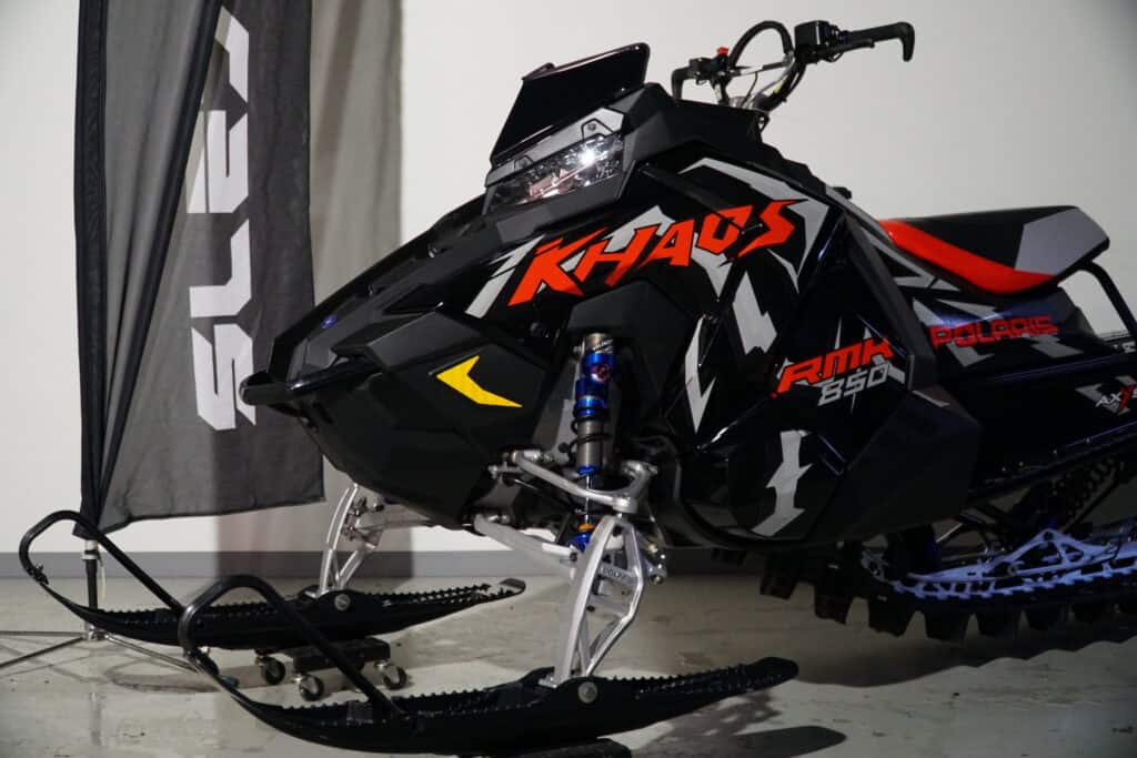 Khaosen däremot, den har Pro Rmk:ns 36 tums framvagn. Till 2020 utökade polaris valmöjligheterna rejält när det handlar om att personifiera maskinen. Givetvis gäller det bara förordermaskiner. Till våran Khaos kunde vi välja lågt styre, egen färgkombo samt den lägre kamhöjden. Ett stort plus i kanten till Polaris!