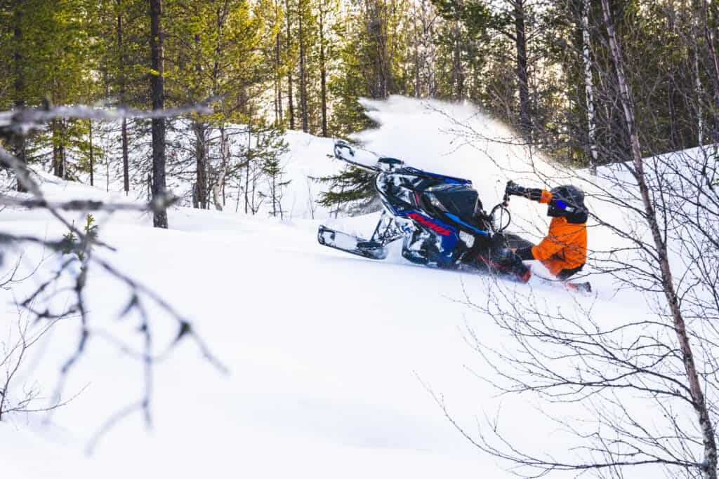 Men en av de största fördelarna känner man vid teknisk körning, när maskinen svarar direkt på input och man kan lyfta skidorna precis när man vill eller göra en vändning för att byta riktning i skogen. Här skulle vi säga att 9R har sin paradgren, en stark motor med en explosiv kraft precis när man önskar den. Effektmässigt känner man dock att Patriot Boost motorn har mer ork högre upp i registret, men 9R har en rappare motorkaraktär. Då ska man ändå vara medveten om att Polaris lyckats riktigt bra med gassvaret på Boostarna, det säger inte så lite om hur pass vass 9R faktiskt är.