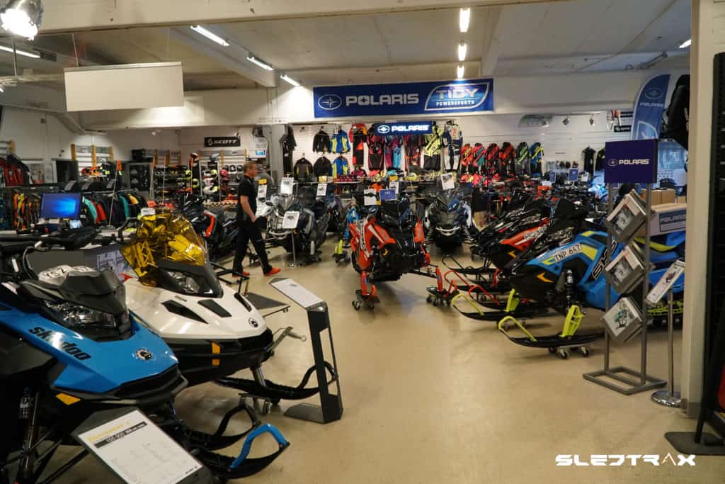 Torsdag morgon och dörrarna är upplåsta hos E-son maskin och Tidy Powersports i Skellefteå. Jag går in i butiken och ser en massa fina maskiner och tillbehör. Men den som vi är här för syns dock inte till vid ett första ögonkast. När vi kommer längre in i butiken under Tidy Powersports flaggor står en röd Polaris Pro Rmk 850 -155” med lappen ”Såld!” på styret. Det är vår långtestmaskin som nu kommit för att ansluta till flottan av långtestmaskiner för 2019.