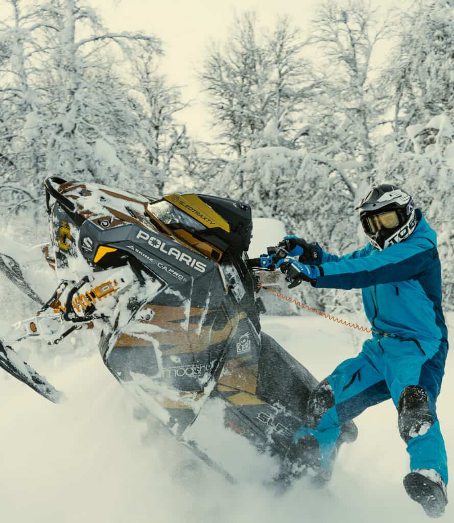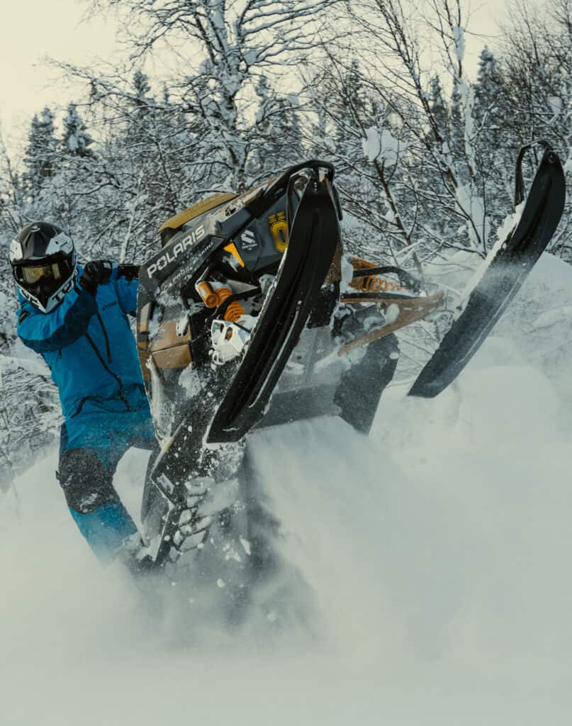 Att åka på rulle är också kul, och med de förändringar vi gjort med Matryxen blir maskinen en rulleraket utan dess like. Närmast skoter jag kan komma på, som är lika rullvänlig, är Ski-doo Summit 146”. Balansen är sylvass när man åker på rullen och det har såklart med mattan och viktbalansen i maskin att göra, där det sistnämnda är något som Polaris alltid varit kända för. Även förarmiljön med CFR 2.0 Boondocker styret, Skinz höjaren och Durapro nödstopp är något som tillför en bättre ergonomi för undertecknad. Helt klart en bra kompott av komponenter som tillsammans gör det enklare för den feta ”kameramannen” bakom styret.