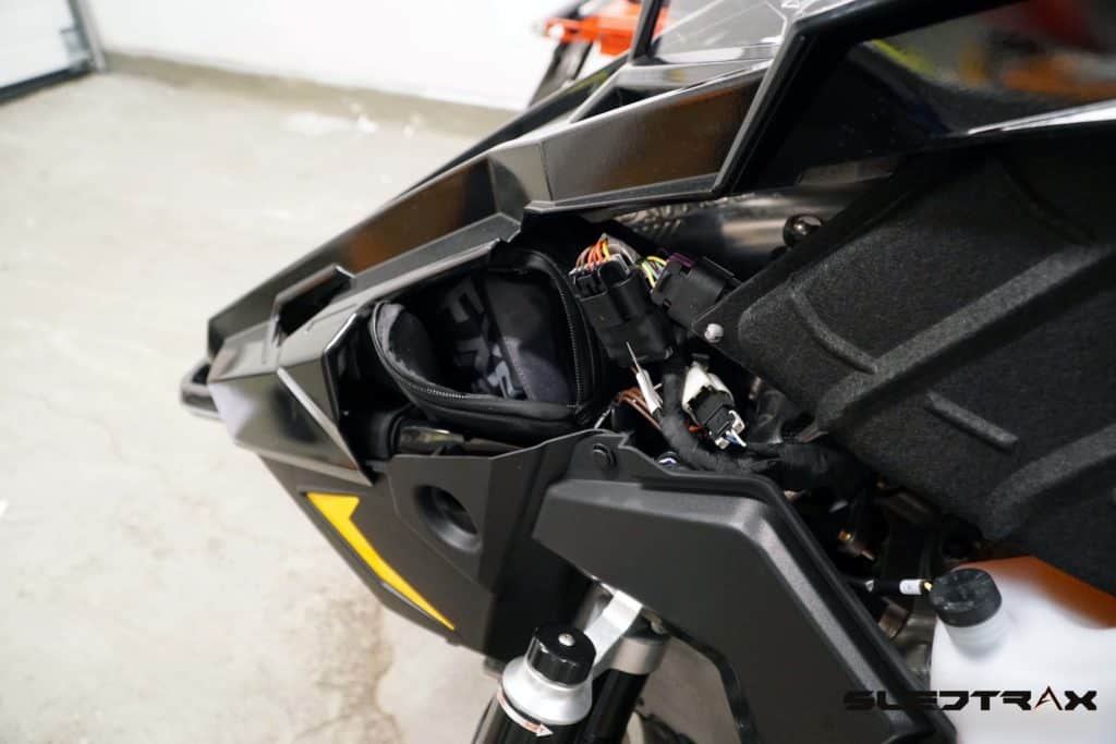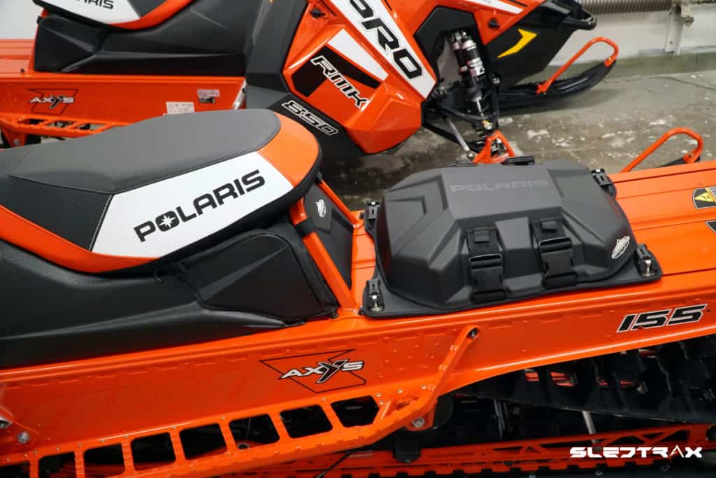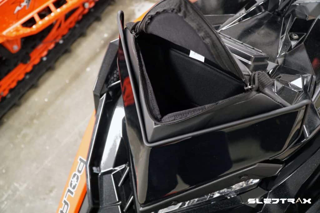 Långtestmaskinen vi kommer att köra med från Polaris är som tidigare presenterat en Polaris Pro Rmk 850 PIDD 155”. Just denna modell kommer som standard med en väl integrerad väska under dynan som med en volym av 7,7 liter är väldigt rymlig och praktisk. Väskan har dragkedjor på bägge sidor och kan snabbt och enkelt öppnas. Här kommer det vara ytterst praktiskt att förvara artiklar som tål kyla och som vi snabbt vill komma åt, exempelvis vattenflaska, mat och snabb energi.