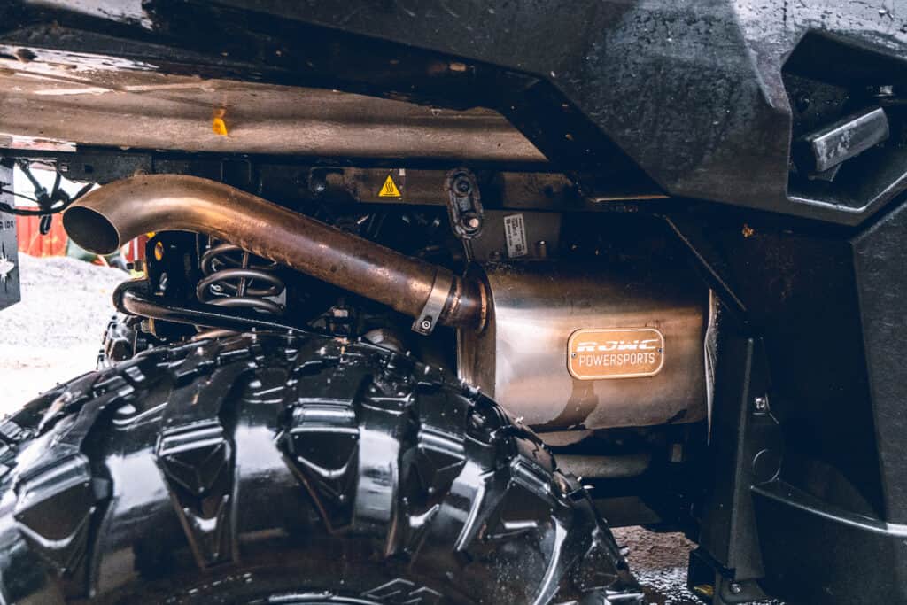 När vi är inne på ljudvolym har vi under året fått ett samtal från Robin på RJWC som funderade om han fick låna vår maskin för att ta fram ett rostfritt avgassystem. Då det inte är längre än någon mil var det enkelt att köra dit vår Ranger. Kort därefter fick vi ett nytt samtal om att vi kunde komma igen för att montera ett färdigt avgassystem och testa under sommaren. Med det nya systemet monterat ser vi att det håller riktigt hög klass på kvaliten med snygga proffsiga svetsar och en logotyp på sidan av ljuddämparen. Ludet är grövre och dovare än original och låter bara en aning högre vilket är skönt både för omgivning och chaufför.