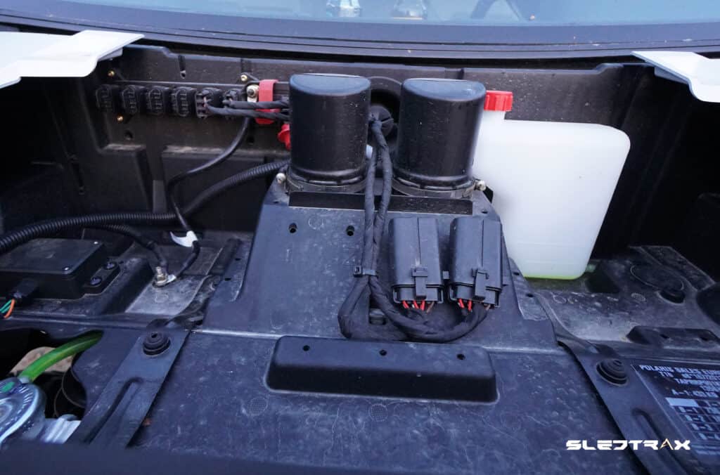 Även här är POLARIS RANGER XP 1000 förbered från fabrik där kabeldragningen kan göras dold samt att strömmen finns i en färdig brygga under ”huven” som man bara klickar fast kontakter i från kablaget för att få spänning.