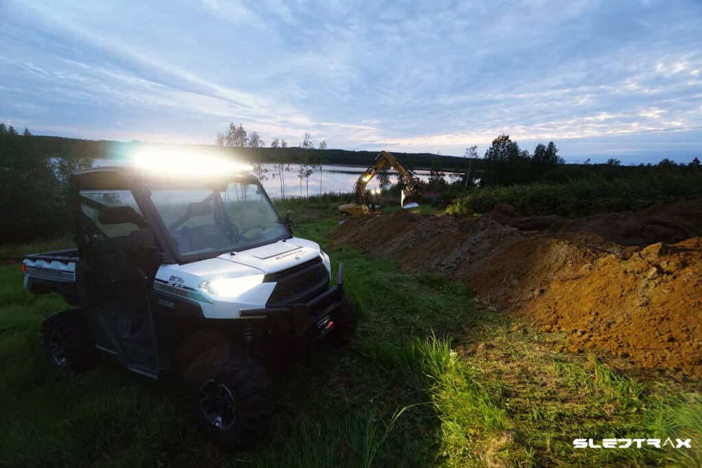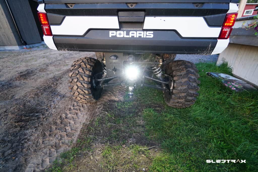 Nu närmar sig hösten med stormsteg och det börjar bli rätt mörkt om kvällarna och då vi använder vår POLARIS RANGER XP 1000 flitigt även kvällstid kände vi att det behövs riktigt bra arbetsbelysning. Polaris har dessutom tänkt till när det kommer till belysning på Rangern, ovanför dragkroken finns det en kontakt där man kan koppla in ett backljus. Vi har valt en Lazer ST2 Evolution lampa på 23 watt och drygt 2000 lumen. Denna tänds automatiskt när vi lägger i backväxeln och vi kan garantera att vi inte missar något när vi backar eller kopplar något i mörkret nu.