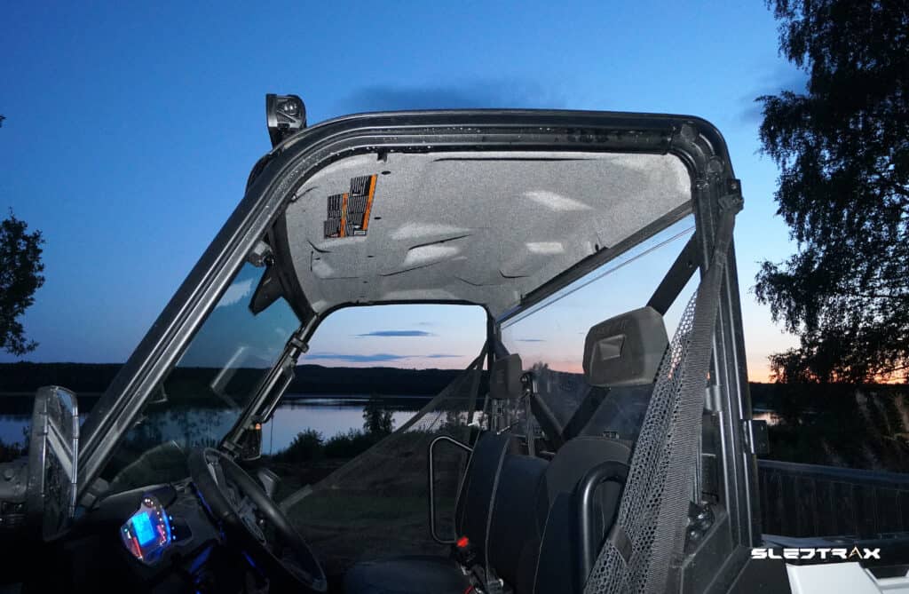Vid leveransen av vår långtestmaskin kommer Polaris Ranger XP 1000 med en öppen hytt där man skyddas av en rörram. Det finns således inget tak eller vindruta som skyddar mot väder och vind. Givetvis klarar man sig bra ändå om man klär sig rätt men vi har valt att kika in vad Polaris har att erbjuda i tillbehörskatalogen.