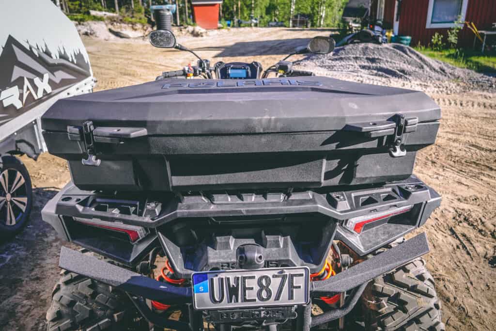 Det går dock riktigt snabbt att borra dessa hål som är markerade på lådan och sedan är det bara att trycka fast den på fyrhjulingen, och lika snabbt kan den tas loss om man vill åka utan extra bagageutrymme. Snygg design med bra kvalitet där locket är extra tätat med en gummilist. Detta är bara ett litet smakprov på alla tillbehör som Polaris har att erbjuda sina atv kunder.