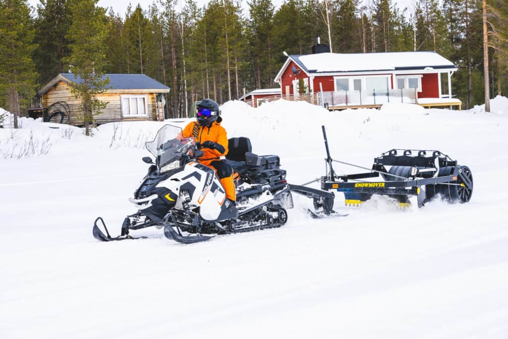 Jag har inte ägt någon bredbandare än men intresset för att sladda leder eller dra vedlass är tilltalande med denna maskin mellan benen. På plats fanns en snowmover vid parkeringen som snart skulle kopplas bakom maskinen för att testa dragegenskaper. Här gör verkligen inte Polaris titan bort sig. Med bra vrid och stabilt uppträdande känns det som att dra tungt inte är ett problem, både när det gäller arbete eller för att dra packpulkan eller familjen ut på fjället.