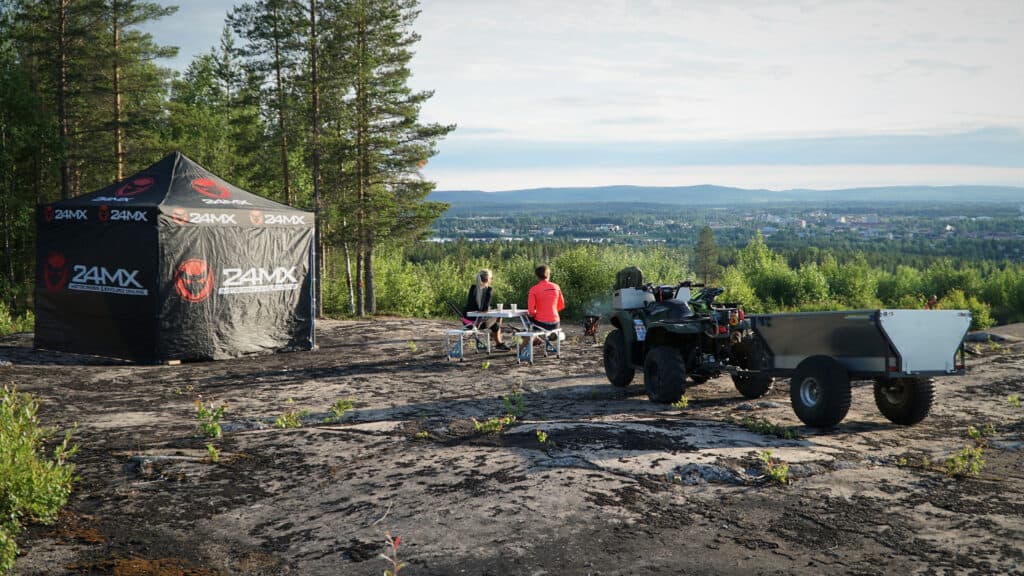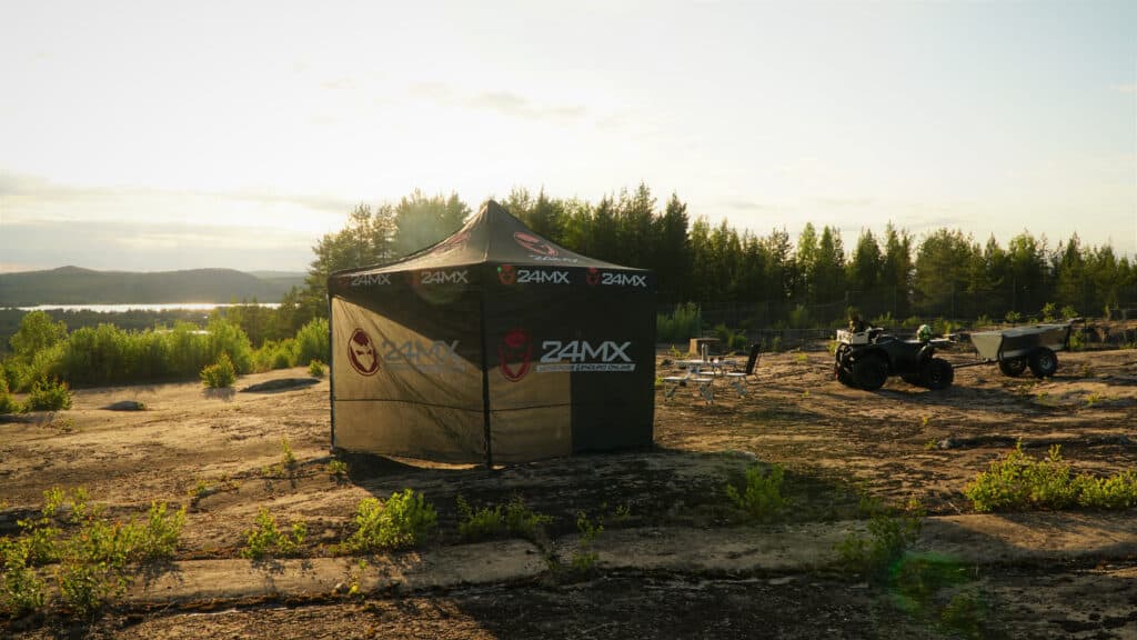 Sommaren har börjat med en riktigt rivstart, värmen har varit tryckande uppe i norr och givetvis har vi tagit till vara på det. Vi har kört massa vattenskoter och fyrhjuling men även testat en del produkter. Från 24mx´s har vi köpt två populära produkter nämligen deras easy up depåtältet och race bordet som blir en smidig portfölj när det är ihop fällt.