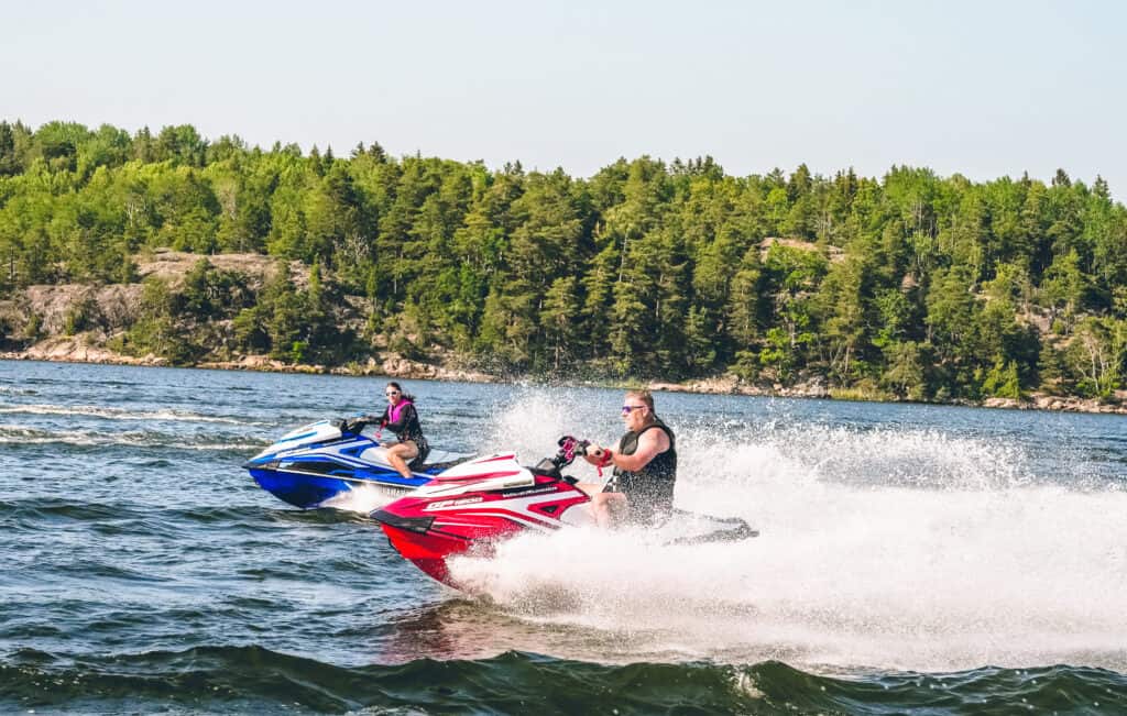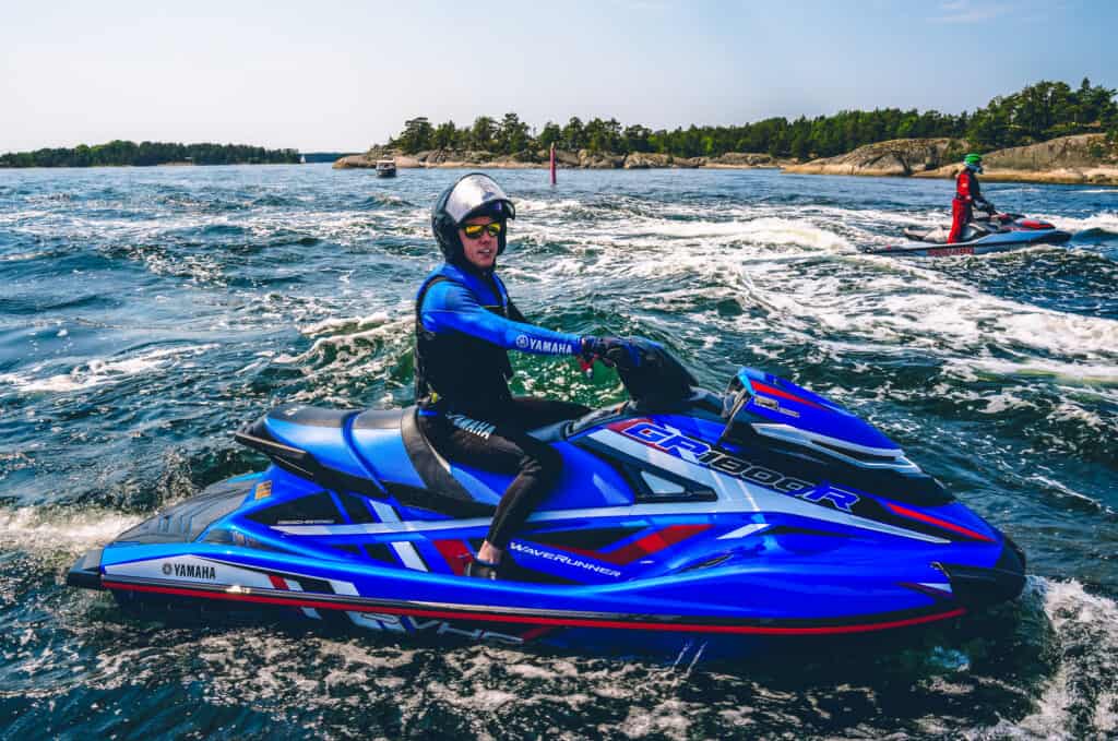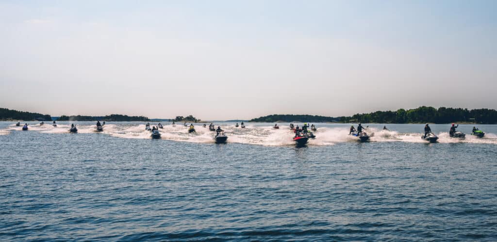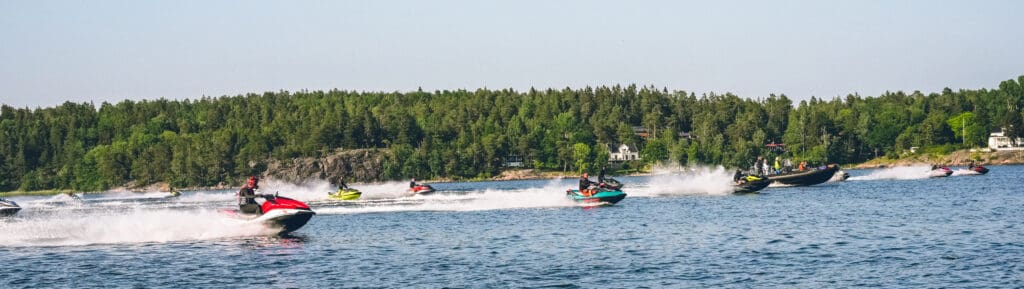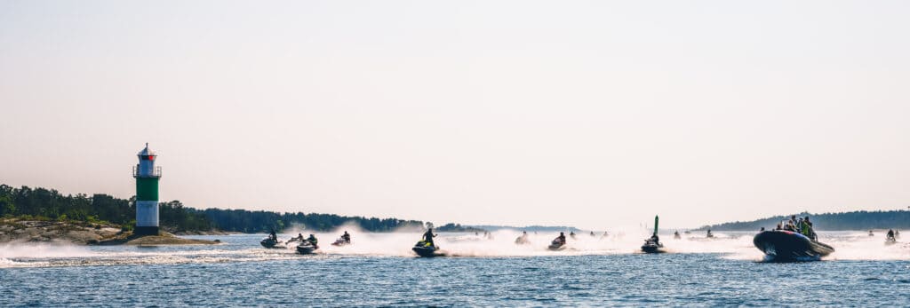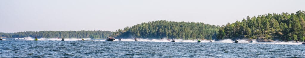 Senare under dagen gjorde undertecknad en fadäs med drönaren som valt att fastna i toppen på ett träd på Grinda när deltagarna swischade förbi. Något som drog ut på tiden och gjorde att vi på Yamahas följebåt således missade stoppet på Sandhamn. Alltid är det något…. (Haha) Avslutningsvis i vattenstänk och småvågor färdades alla deltagare in mot Stocholms inlopp där avtackning från Niklas skedde sent på eftermiddagen utanför fjäderholmarna. En ”toppen” dag i dubbel bemärkelse var så skriven i historieböckerna. Vi vill passa på att tacka Niklas och Yamaha Marine för denna upplevelse. Vi kan starkt rekommendera alla våra läsare som gillar vattenskoter att delta i PWC ENDURANCE event under kommande år.