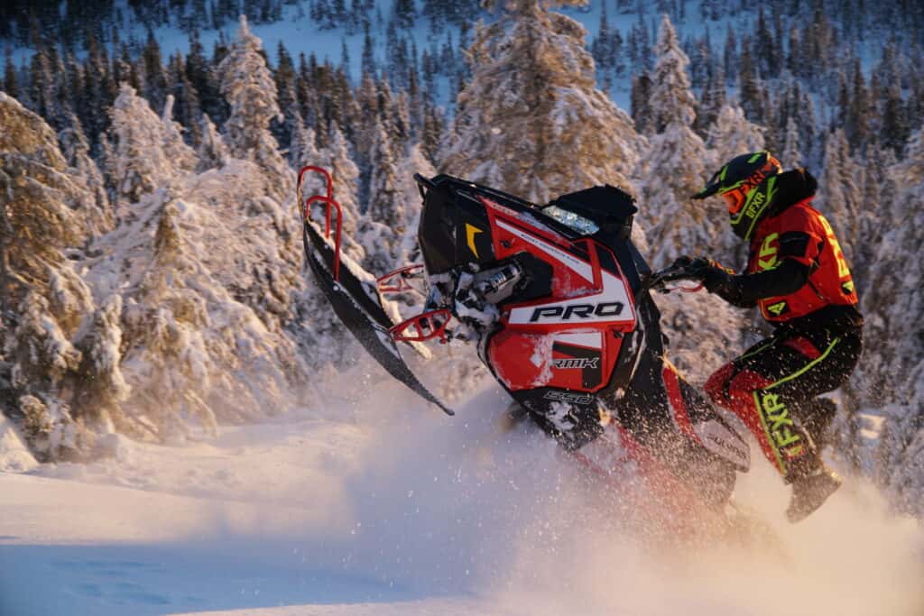 Med den nya programvaran känns skotern mer levande och vi trivs som fisken i vattnet när vi far omkring med denna skoter i skogen. Vilken maskin! Den går som kulor och krut, är smidig som en räv och kraften tycks aldrig mattas av när man håller full gas i backarna. Den nya framvagnen, React, är som vi tidigare nämnt justerbar från 36-38”. Undertecknad har nu hittat rätt inställningar och känner sig väldigt trygg på maskinen.