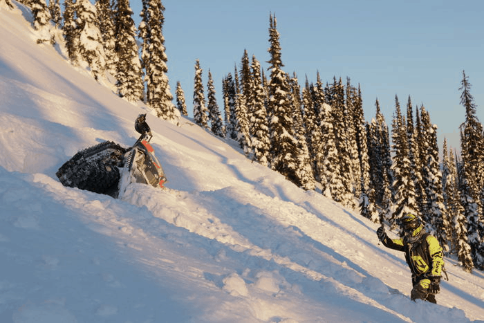 Planen var att mötas kl 08:00 på bensinstationen i Revelstoke för att tanka upp och bege oss mot ett område ett par mil utanför staden. Under söndagen kom det ca 40 cm uppe till fjälls så förväntningarna var på topp. Denna dag hade jag sällskap av Kim och Thim, ett par riktigt sköna grabbar från Skellefteå som jag stötte in i hos den lokala skoterhandlaren här. Grabbarna var ute efter att hyra maskiner och jag var där för att jag hade sprängt en rem ett par dagar tidigare. Killarna hade inte några särskilda planer på vart dem skulle åka så jag erbjöd mig att ta med dem på riktig backcountry åkning i ett område utanför Revelstoke som jag visste skulle vara orört.