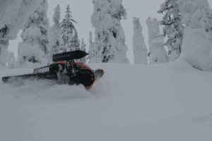 Vädret som varit toppen under hela denna vecka är som bortblåst och har lämnat oss ett täcke utav gråa moln. Vi drar igång maskinerna och börjar klättringen längs en snöfylld skogsbilväg.