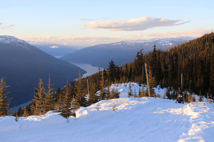 Planen för de första dagarna i Revelstoke är att försöka ta det lite lugnare än i vanliga fall för att köra in maskinen, lära känna området och terrängen, detta för att inte skrota vecka ett och dels av rena säkerhetsskäl. Försäsong i Revelstoke är inte som hemma där man har 3 dm snö och kör längs en skogsbilväg, utan här finns det risk för laviner då snön inte har satt sig ännu fast den redan ligger meterdjup på fjällen. Det finns likaså risker med öppna hål intill träd och ostabilt väder som kan dyka upp från ingenstans, dock ser dagens väder lovande ut. Har en GPS med mig där jag tänkt lägga in punkter för rolig åkning samt för att hitta tillbaka om jag skulle bli vilse. Området jag ska åka på idag är Boulder Mountain, enligt de lokala åkarna bjuder berget på allt från öppna kuperade kullar till mer brant åkning för hillclimbers (turbo hill)och bland den bästa tekniska åkningen vid trädgränsen.