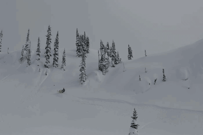 20 minuter av race efter en cat-ski väg lika bred som autobahn leder oss upp till alpine och vår första bowl. Vi blickar ut över fjällmassivet och ser oändlig terräng av fluffig snö och häftiga ”features”, efter några minuters diskussion om lavinsäkerheten börjar leken på allvar. Alla kör av sig i första bowlen, puder sprutas åt alla håll och vi efterlämnar inte en kvadratmeter orörd snö till kommande skoteråkare.