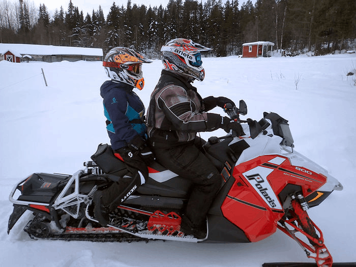 När det kommer till att ta med sig barn på snöskotern finns det många olika teorier om vad som är bäst säkerhetsmässigt. Att ha barnen framför sig är populärt, men om det skulle ta tvärstopp är det stor risk att du råkar klämma fast barnet mot styret med din egen vikt. Något som kan vara direkt förödande, minst sagt. Att ha barnen bakom sig är bättre ur den aspekten, men om skotern saknar ryggstöd kan det kännas osäkert för både barnet och föraren. Därför har nu Bengts Cykel och Motor tagit fram en lösning som är lika enkel som genial.