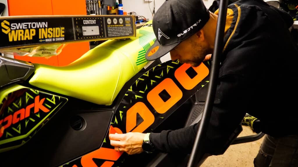 Undertecknad har börjat fatta stort tycke för att sätta dekalkitt på maskinerna då det ger en egen prägel på dem, att klistra snöskotrar har jag gjort tidigare men aldrig på en vattenskoter. Det skulle visa sig vara en smidigare uppgift då det inte är lika mycket vinklar på plasten utan mer svepande linjer, efter en kväll hade Trixxen fått sig en ny kostym.