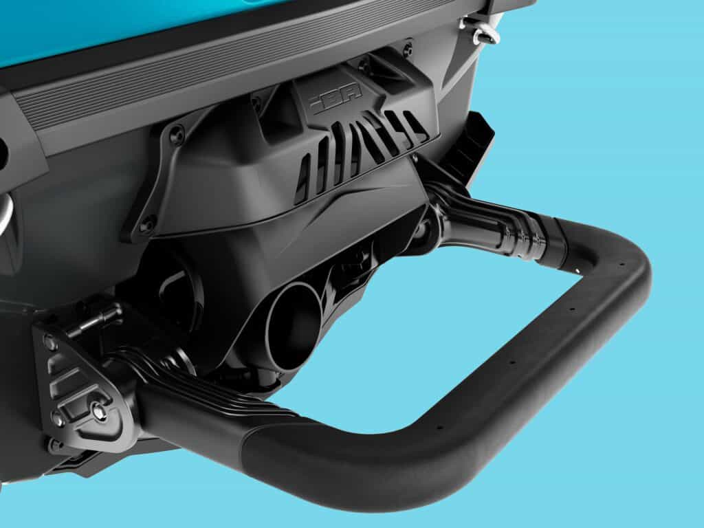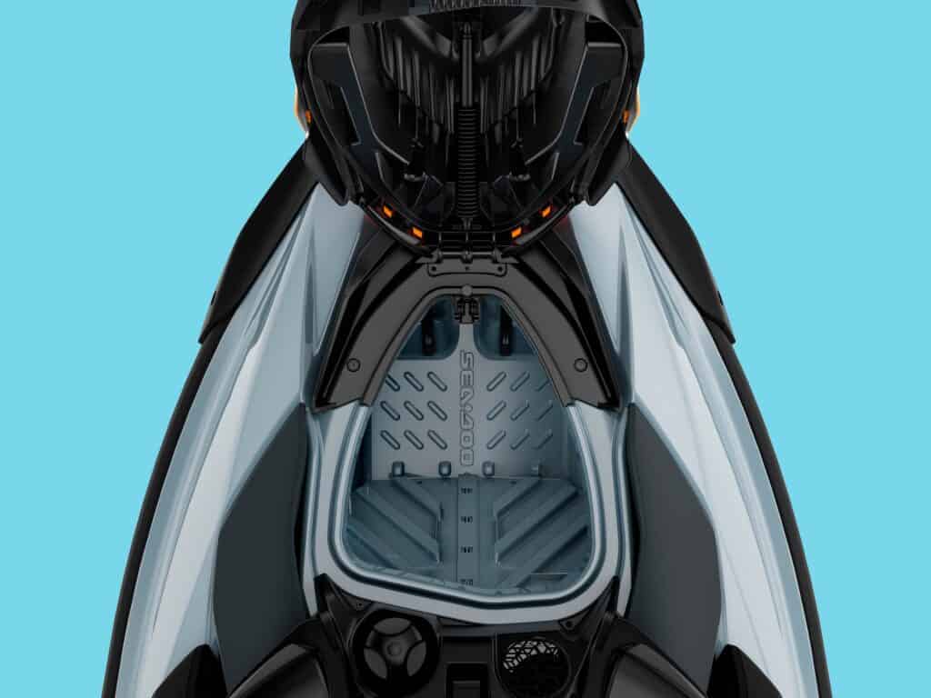 Förvaringen är generöst tilltagen. Förvaringsfack framtill, ett mindre fack framför styret med plats för både solglasögon, solkrämen och ett vattentätt utrymme för telefon. Dessutom baktill på plattformen finns integrerade Linq fästen som gör vattenskotern mångsidig. En kylväska, en förvaringsbox, lite extra bensin monteras enkelt på någon minut. Något vi på Sledtrax gillar, Tummen upp!