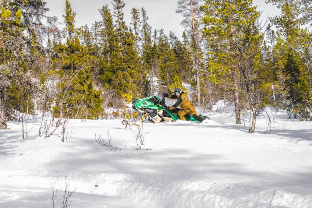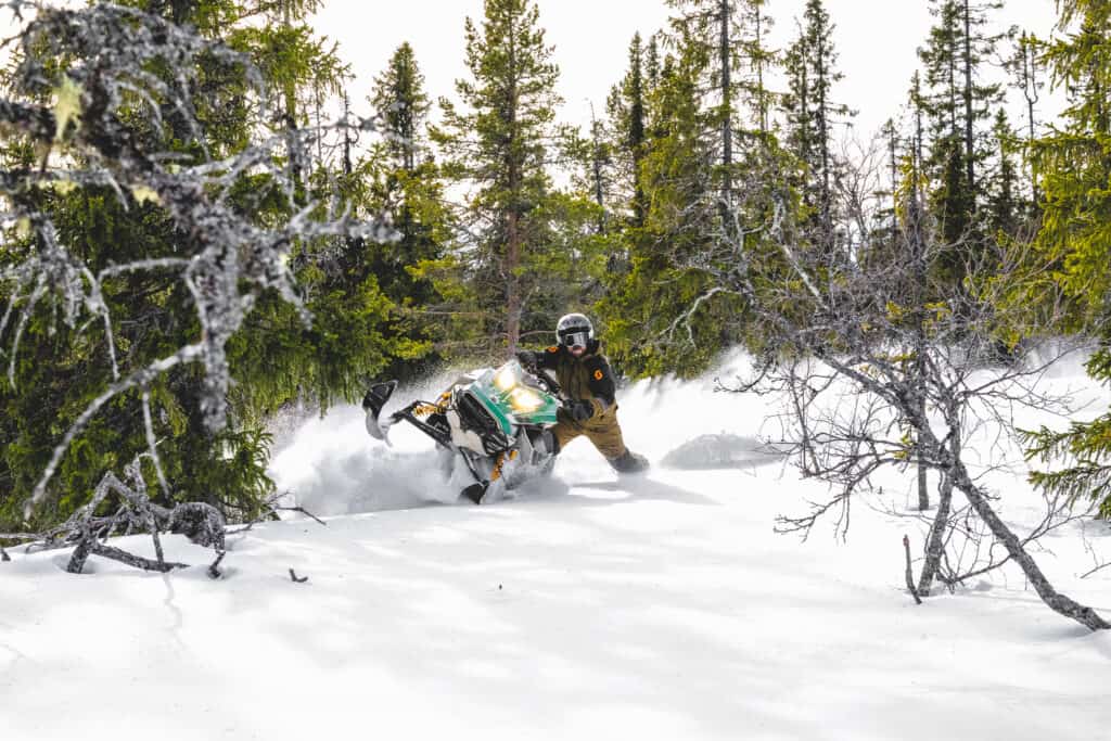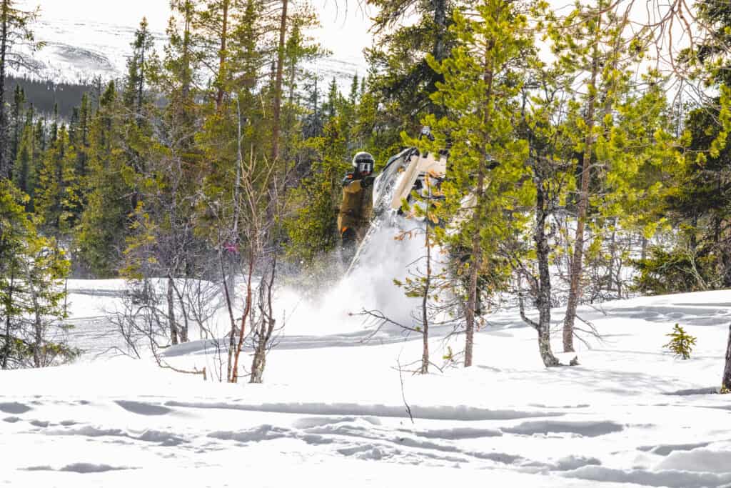 Suget efter en galet bra myr med vitt puder var stor efter ojämn led och ledkryss efter ledkryss. Tillslut fick “Grodan” ta några små, men ack så härliga pudersvängar. Här fick motorn visa vad den går för. Stenhårt med variatorkittet från Oktan och optimeringen från Maptun. När hela 172 hästar med ett vässat variatorkitt vrålar ut gäller det att hålla i sig i styret. Det blev inget whiteroom, men ett smile kändes av hos både förare och skoter. Maskinen följer följsamt föraren dit den vill utan problem. Typ som när det är dags för 15-kaffet på jobbet och du vet att snart är det hemgång. Att glida in i personalrummet har aldrig varit lättare då.