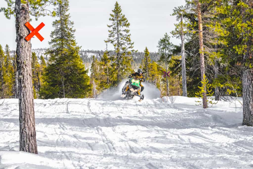 Ibland blir det inte riktigt som man tänkt sig… Det var med livet i behåll som ett hopp skulle testas med “Grodan”. Istället för ett graciöst, häftigt och högt hopp slutade undertecknad med grenar i luvan och hjälm. Istället för att få fäste och dra i väg en si så där nån meter blev det pannkaka av det hela och “Grodan” fick kämpa mer än vad den behövt. Skyller absolut allt på snön. Inget fel på undertecknad här inte…