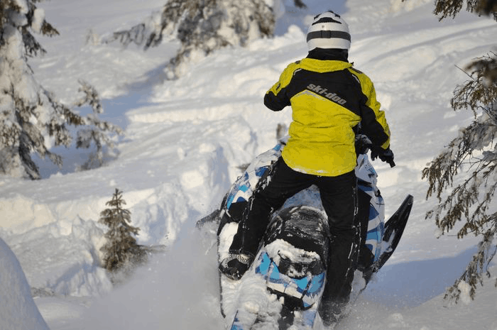 På dagens snöskotrar sitter man både högre samt längre fram än tidigare, och ni har säkert märkt att man gärna vill ligga med knäna direkt mot plastkåporna numera. Det är något som klädavdelningen hos Ski-doo också lagt märke till. På grund av det så sitter det extra tjock vaddering på knäna vilket fungerar som ett enklare knässkydd.