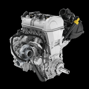 Går med spända steg mot Renegade X-RS 900 turbon ute på uppställningsplatsen för alla maskiner ute på West Yellowstones flygplats. Trycker på startknappen till motorn som hoppar igång handlöst. Soundet ur motorn är inte lika tamt som på 900 ACE utan turboaggregat. Det hörs direkt att motorn får hjälp med syretillförseln.