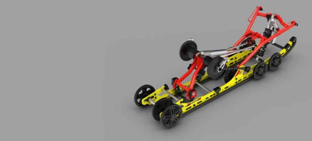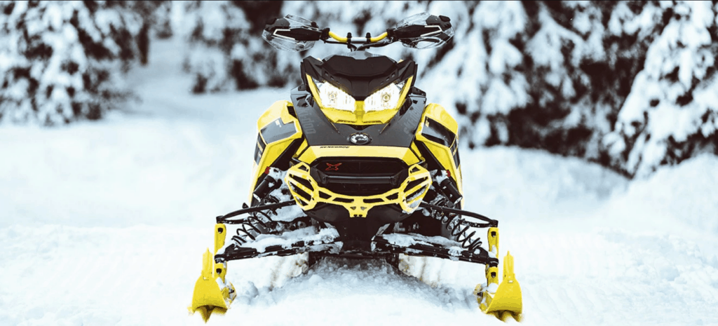 Om vi börjar titta fram så hittar vi den nya RAS X framvagnen som ska vara gjord för att klara knivskarp kurvtagning, i samarbete med rMotion X-boggien ska skidorna hållas nere i backen. Spårvidden är justerbar i tre lägen och har i sitt yttersta läge blivit 38mm bredare, det innebär att den mäter 43,9”. Geometrin är även omgjord för att arbeta ännu bättre ihop med boggien och fjädringen har fått ytterligare 10mm att röra sig på, det här ihop med nyutvecklade skidor skvallrar om att nosen kommer åka dit du styr.