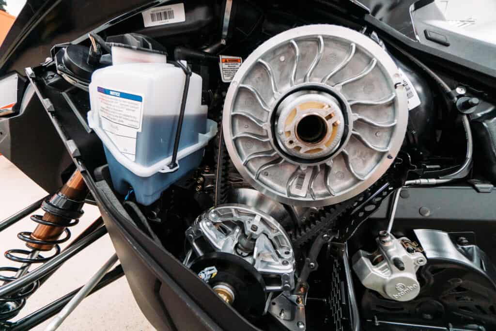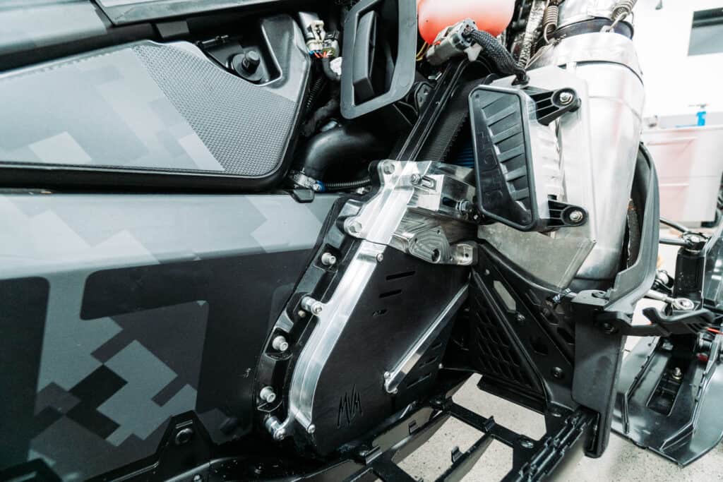När vi var inne på att uppgradera effekten i motorn insåg vi även att vi kommer att behöva se över variatorerna som vi tillsammans med Modshop har monterat deras Adrenaline variatorkitt. Men eftersom denna Turbomotor är helt ny samt att vi även gett den fler hästkrafter förstod vi att vi kommer att få testa oss fram med lite olika prylar under vintern för att få det att lira riktigt bra. Trots att det är ett bra gassvar i motorn kikade vi på vad man skulle kunna göra för att förbättra det ytterligare och en sak är givetvis Modshops variatorkitt men man kan även byta ut dom tunga dreven samt kedjan i kedjehuset.