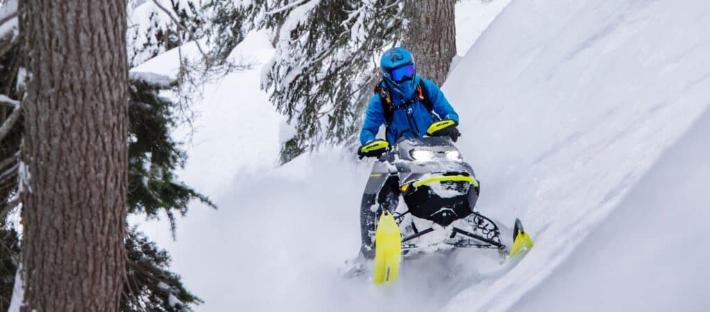 Skråkörning med Summit har inte varit en dans på rosor i alla förhållanden, och den har släppt ner bakändan lite väl lätt i vissa situationer. Men det har man jobbat mycket med för att råda bot på. Dels är mattan nu 38 centimeter bred som back in the days, och så har Summiten inte längre en “öppen” T-motion led. Man har gått tillbaka till en fast sax vilket vi på Sledtrax har längtat efter. Av allt att döma på X antal minuter, ja timmar, av filmklipp på nya Summiten körandes i staterna verkar det som att den kan bli riktigt trevlig att side hilla med. Något som Ski-doo trycker hårt på är att den skall vara väldigt mycket bättre på just skråkörning än tidigare modell.