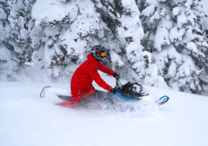 Under provkörning i West Yellowstone var snöförhållandena dom bästa på flera år och 146” är absolut i kortaste laget i den tre meter djupa snön. Men Summiten sköter sig fint.