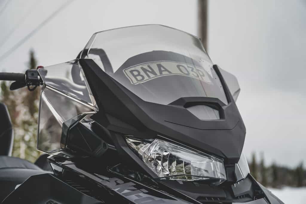 När vi valde att montera förhöjt handskfack så passade vi på att montera en ruta också. Vi valde inte den absolut högsta utan tog mellanmodellen. Monteringen av den tar enbart 10 minuter. Sex skruvar och fyra proppar för snabbfästet sen är det klart. Rutan plockar man lös på 30 sekunder utifall man vill göra det. Klockrent om man skall ut och böka på i skogen. Nu är skotern redo att tjänstgöra som familjemaskin.