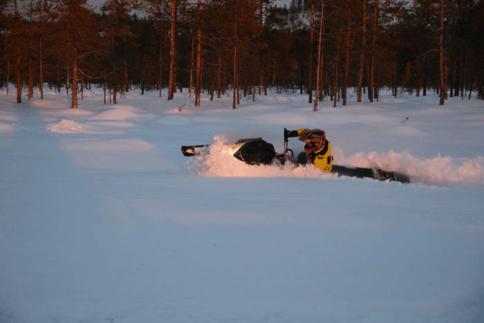 Om man ser till fjädringen är den riktigt bra, mjuk och följsam som en puderskoter skall vara. Vi saknar dock inställningsmöjligheterna som konkurrenterna har på sina maskiner. För här i Sverige händer det ibland att vi inte bara har bottenlös pudersnö, och då skulle man vilja kunna ställa stötdämparna hårdare för att tåla lite tuffare tag. Nu räcker dock original setup riktigt långt, och dom allra flesta behöver inte värre stötdämpare för den typ av körning som en Summit är byggd för.
