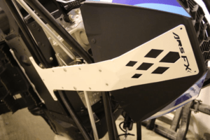 En känd svag punkt på Summiten är S-modulen som sitter i chassiet under motorn, därför uppgraderade vi den främre lyftbågen tillsammans med ett förstärknings kitt ifrån Zbroz racing. Allting var gjort i aluminium och förstärkte även den övre stötdämparinfästningen. Snyggt och prydligt och oerhört robust.
