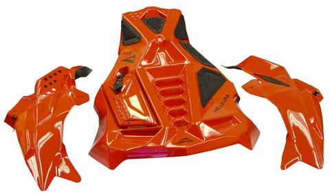 Nu lämnar vi insidan och fortsätter med det yttre. Det är här den visuellt största skillnaden kommer att ske. Ni kanske har sett Skinz häftiga byggen med Helium kitt i form av plastkåpor som är minimala för att göra maskinen mindre? Nu har man även tagit fram ett helt kitt till G4 plattformen där man dragit in sidokåporna maximalt och en huv i samma stil. Tanken är att minska motståndet av snön mot skotern och att man kan lägga ner skotern på skrå betydligt djupare när inte kåporna trycker emot på samma sätt. Kåporna är även väl ventilerade för att hålla nere temperaturerna i motorrummet och då även skona variatorremmen.