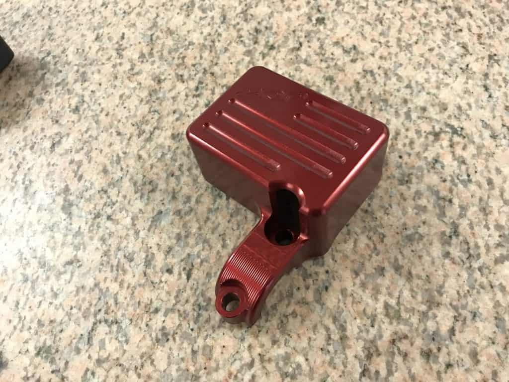 En känd akilleshäl för denna skoter är bromsvätskebehållaren som är gjord av plast. Det är mer än en gång man sett denna trasig efter närkontakt med en gren eller träd. Här har ZRP tagit fram ett skydd i Billet Aluminium som täcker plastbehållaren och ska tåla mer misshandel.