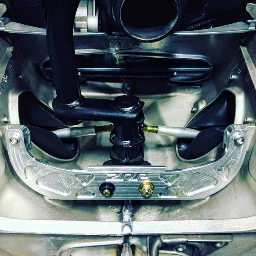 I framvagnen byter vi ut samtliga a-armar och spindlar till en ZRP billet framvagn, ZRP står för Zollinger racing products. Deras framvagnar kan man se hos ett flertal förare på hillclimb tävlingarna i USA. Både spindlar och a-armar är frästa ur aluminium för bästa hållbarhet samtidigt som vikten förblir låg, att de sedan är galet läckra att se på gör inte saken sämre.