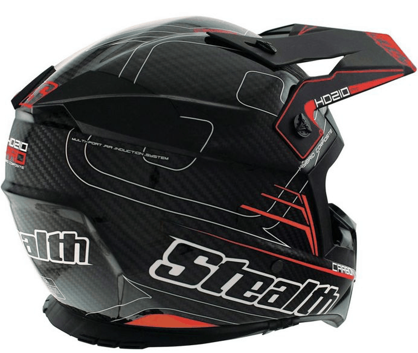 Det finns många leverantörer av lättviktshjälmar för snöskoter/motocross. En av de mest välkända idag är Airoh som snart sitter på var mans huvud, men om man ska ha en lättviktshistoria måste man slanta upp mellan fyra och femtusen kronor hemma i Sverige. Fox och Shift levererar massor med hjälmar, men det är svårt att hitta någon som väger under kilot och om man hittar någon sådan kostar de inte fikabrödspengar. Det gör inte Stealth Carbon heller, men för runt tvåtusen kronor får du alltså en hjälm som, förutom snygg design, väger under kilot, det vill säga 950 + – 50 i storleken M. Den testade produkten väger faktiskt uppmätta 944 gram! Hjälmen är i övrigt utformad ganska mycket utan tanke på den kalla årstiden, det vill säga att den har ett tunt foder innanför frigoliten. Å andra sidan har den inte överdrivet mycket ventilation utan precis lagom, så där att du kan avsluta din lek i ravinen när svetten börjar rinna på insidan av gogglarna och dra en snabbare sväng på leden för att kyla ner skallen utan att det blir för kallt.
