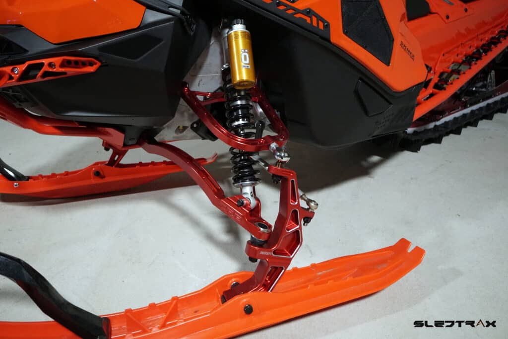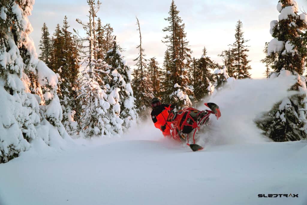Det som vi känner störst skillnad mot originalmaskinen är dom nya stötdämparna från Öhlins, vi har startat med kompressionsinställningarna i mitten av skalan. För att sen kunna justera mjukare eller hårdare utifrån hur man vill ha dem. Personligen vill jag åka med en riktigt mjuk setup i pudret för att sen göra maskinen styvare mot våren när snön blir kompakt.