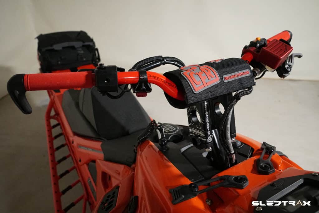 För att anpassa maskinen ytterligare efter föraren har vi monterat ett styre samt styrhöjare från Cheetah Factory Racing (CFR). Vi har sänkt styret en aning men inte allt för mycket, cirka 2,5 till 3 cm lägre än original har vi hamnat med en 4 tums styrhöjare. Höjden känns jättebra i förhållande till hur man har armarna böjda vid körning, om styret är för högt blir man fort trött i axlarna. Men vi vill inte heller hamna för lågt med styret då det inte heller är optimalt, utan här är vi riktigt svenska när vi försöker hitta en lagom höjd på styret.