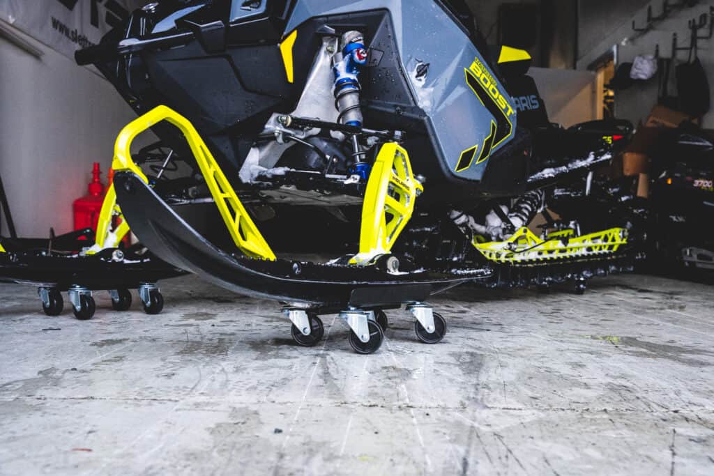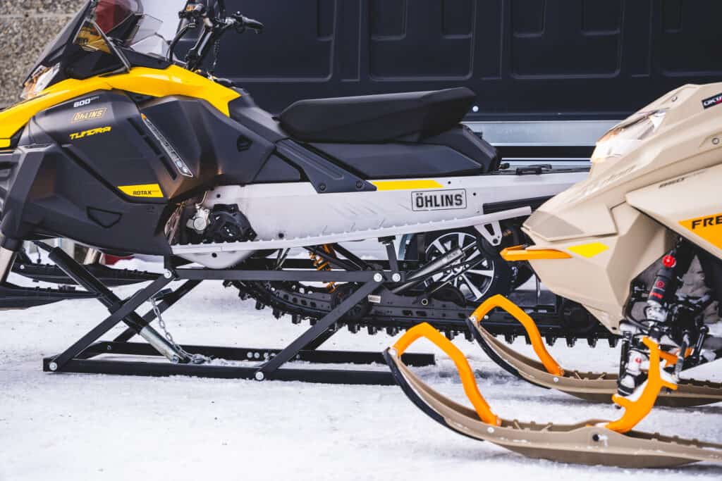Byte av styrstål, drivmatta eller drivhjul kan vara lite omständigt, men ibland ett måste. Därför rekommenderar vi Proworks snöskoterlyft för att förenkla det hela. Okomplicerat vevar man upp skotern så både