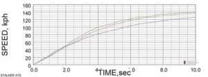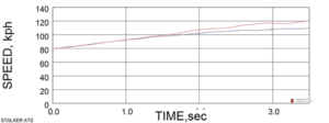 Polarisen hann på samma tid från 80 km/h till 108 km/h. Helt OK, men det skiljer alltså 12 km/h på 3 sekunder. B-TX:en och X-TX:en var i princip oskiljbara och graferna gick nästan inte plocka ut från varandra.