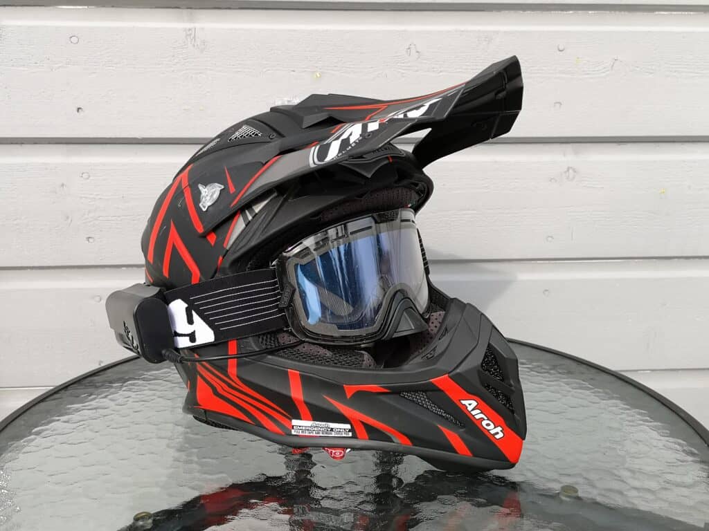 Här har vi ett par ruggigt läckra brillor, designen är riktigt läcker. Den tunna ramen gör sikten i glasögonen fantastisk. De är väl ventilerade och motståndskraften mot imma är väl godkänd. Passformen i Airoh-hjälmen är riktigt bra.
