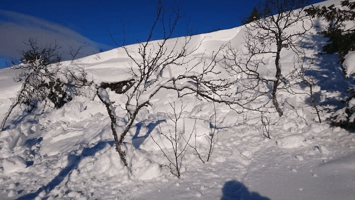 Så det ger oss vad som är lavinterräng. 25 graders lutning antingen ovanför eller nedanför oss är att klassa som lavinterräng. Det är många som tror att lavinterräng bara är en stor fjällsida med en hängdriva ovanför, jag var en av dom för 5-6 år sedan. Jag åker bara i skogen, jag är säker! Hör jag från många, en liten öppning som slutar med en bäck eller ett dropp på 5 meter kan komma att ändra på din inställning till laviner i skogsterräng. Den där bäckravinen du och dina vänner brukar leka i som lutar brant ner mot botten med en lutning av 30 grader kallas för terrängfälla på fackspråk och är en liten dödsfälla vid fel omständigheter, oavsett vart i Sverige du råkar befinna dig. Så det behöver inte betyda att du är säker bara för att du åker kring höga kusten om snön befinner sig där. Det är inte bara raviner som klassas som terrängfällor utan även stup som du kan bli knuffad utför, tät skog eller stenravel som kan orsaka trauma (fysiskt skada dig mot träden eller stenarna) eller bygga stora snöhögar av rasmassorna och begrava dig djupt.