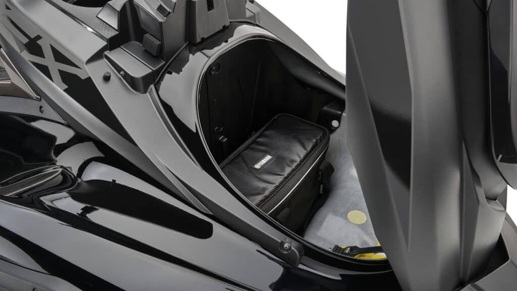 Yamaha FX SVHO har det nya NanoXcel2 skrovet som är aerodynamiskt format för minskat vindmotstånd i hög fart. Förutom utformningen är skrovet robust, lätt och stabilt, perfekt för att möta lite grövre sjögång. På maskin hittar vi även riktigt bra förvaring i form av ett stort fack framtill perfekt för extra flytvästar eftersom maskin är 3-sitsig, ett lite mindre framför dynan som kan användas för förvaring av telefon (dock ej vattentätt). En vattentät låda under dynan och en ”wet apartment” längst bak perfekt för wakeboard repet.