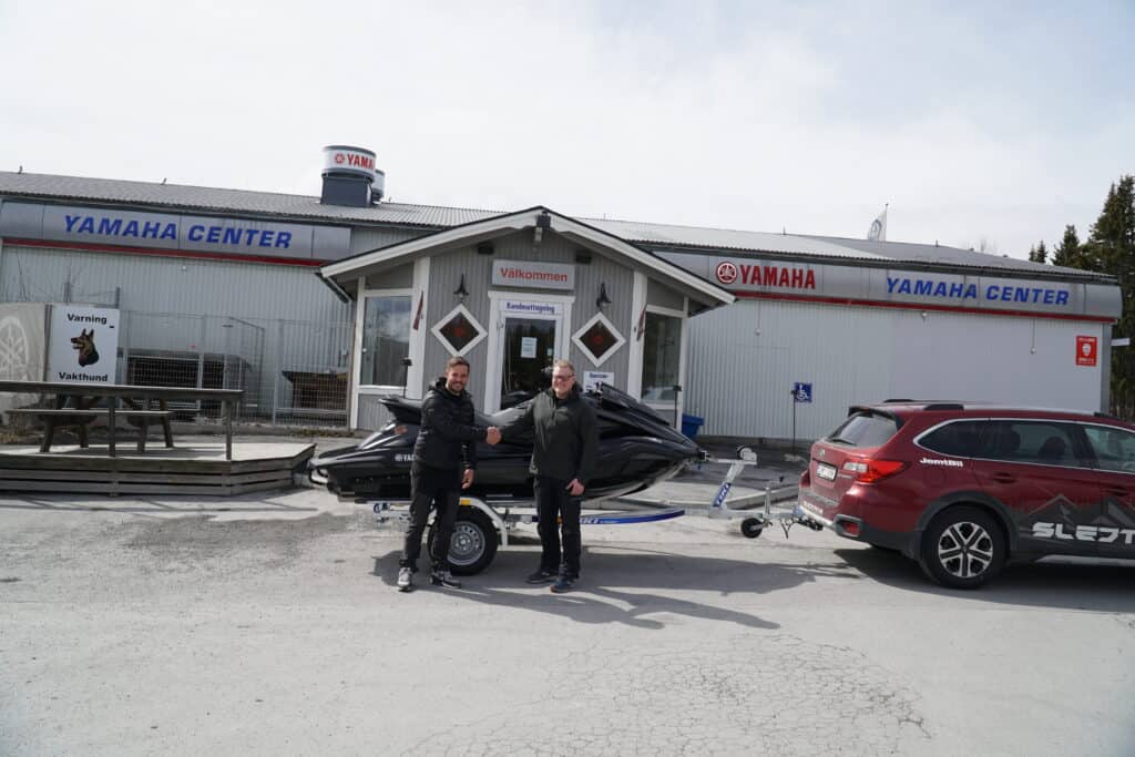 Yamaha center Östersund är en av landets äldsta handlare och Yamahacenter, därav kändes det anrikt att få hämta ut maskinen hos Niklas och Petter. En välfylld butik med många av sommarens leksaker visas i showrummet och suget efter att spendera pengar blir påtagligt stort. Efter lite signering av papper och ett handslag senare är vi för första gången ägare till en Yamaha vattenskoter med långt över 200 hästar på strålen! ”wow”