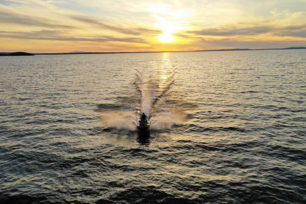 Några minuter blir snabbt någon timma och med denna leksak mellan benen blir jag ständigt förvånad gång på gång över effekten i motorn och väghållningen vid kurvtagning i detta skrov. Trots att det ska vara en ”touring” maskin med tresits dyna och komfort upplevs vattenskotern mer som supersport! Det ni! Det är ett toppbetyg för vår första sväng på vattnet. Häng med i kommande reportage när vi ska ta med vår batmobil på utflykt härnäst i Stockholms skärgård.