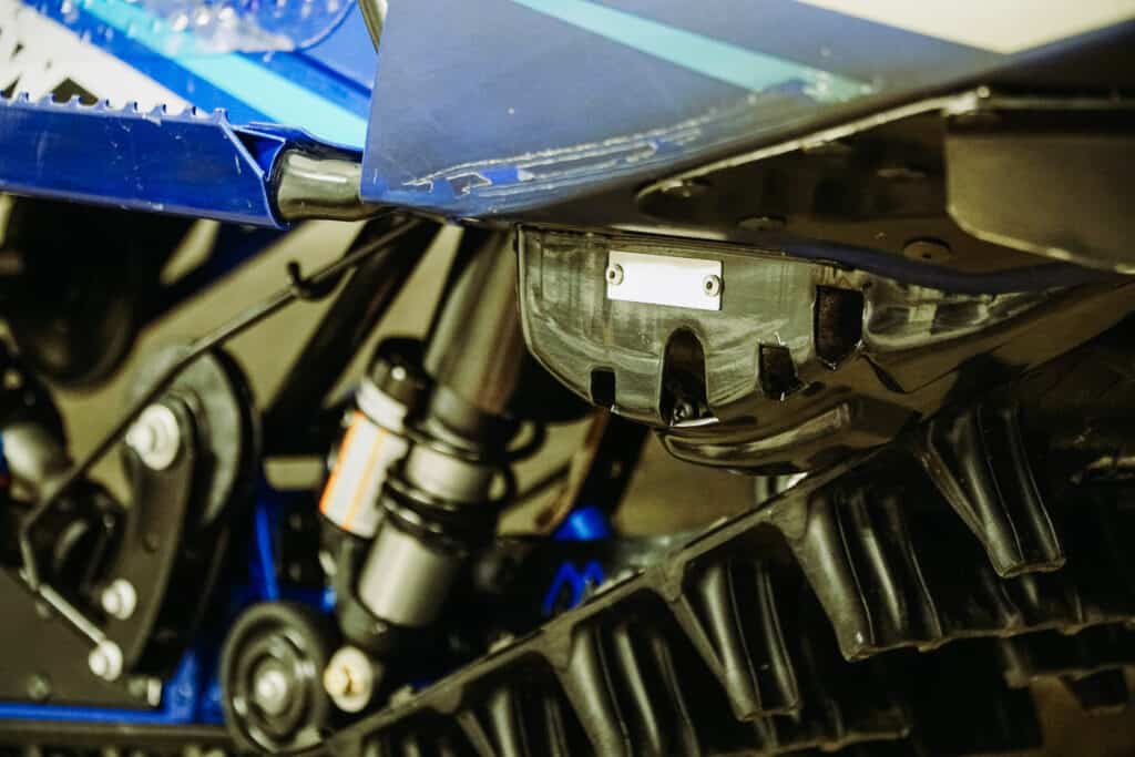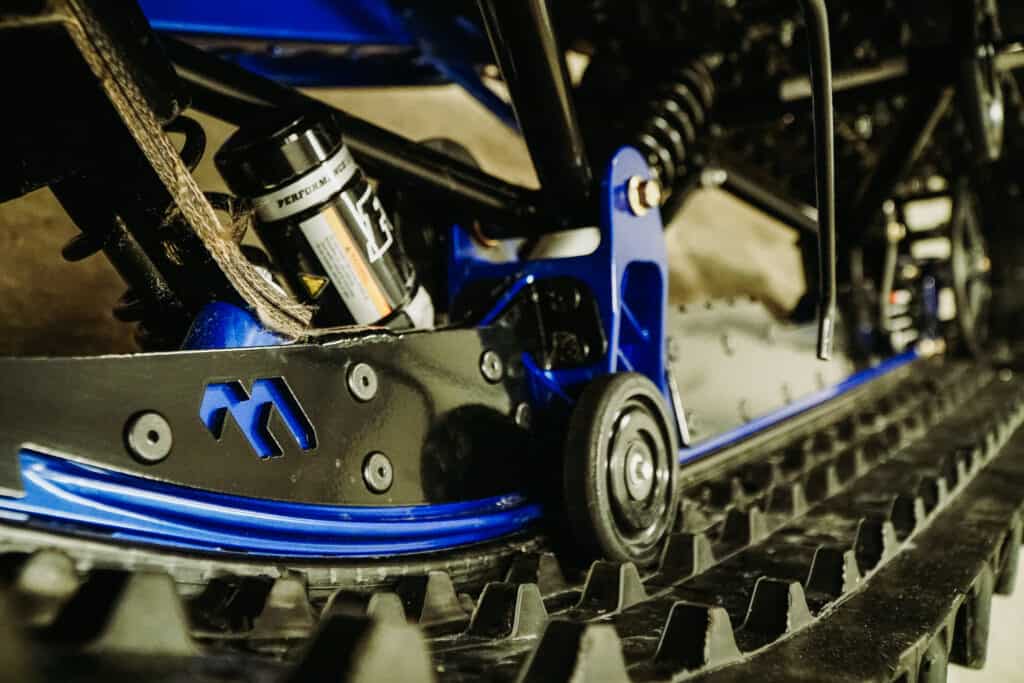 När vi nu ändå är inne på förstärkningar går vi osökt vidare till nästa produkt vilket är boggieskensförstärkare från Madparts. Om än Monorail-skenan tycks hålla riktigt bra för oss finns det alltid en risk att man kör på något som gör att skenan går av. Ett säkert sätt att bättra sina odds om olyckan är framme är att montera förstärkaren från Madparts, som förstärker både främre delen av skenan likväl som bakre. Det tål dock att informeras om att montaget inte är lika enkelt som på en traditionell boggie, utan det kräver att man tar lös boggien från skotern. Som tur är går det relativt smidigt att göra det på Yamahan då boggien är riktigt enkel att hantera. För oss är det dessutom självklart att montera denna förstärkning när nu säsongen går mot sitt slut och snön bara blir hårdare och hårdare. Att investera 3500kr för att kunna köra vidare efter en dålig landning i vårsnön, det känns som en riktig ”no-brainer”.