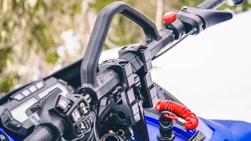Till sist har vi valt att justera höjden på styret. Själva höjden på styret och hur det passar just dig som förare är något som varierar från person till person. För undertecknad som är drygt 2meter lång och främst sysslar med teknisk körning är höjden på styret i originalutförande lite för högt. Därför tog vi och monterade en 3” styrhöjare från Snell, som är både snygg och otroligt prisvärd. Finns hos SLEDSTORE