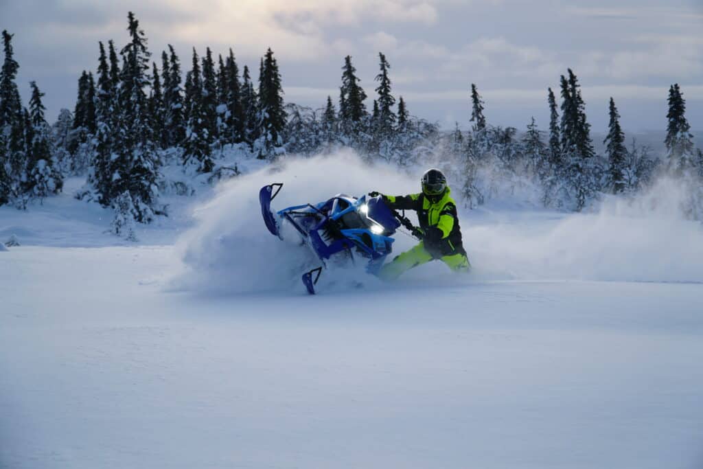 Vidare in i nya playgrounds längs myrsystemet leker vi och minutrar blir till timmar. Blir lite överraskad och glatt förvånad över hur kul maskinen är och hur bra Sidewindern faktiskt går i snön. Har enbart åkt tvåtaktare tidigare, men Yamakatten imponerar stort på mig. Med kraft i överflöd och rätt inställda QS3 dämparna blir maskin väldigt lättkörd trots den något tyngre vikten mot liknande tvåtaktare. I teknisk terräng kan jag inte uttala mig då snödjupet inte lät oss in till branter i skogen, men i öppen terräng glänser Yamaha Sidewinder M-TX 153 och är man en adrenalin junky som undertecknad så är denna maskin helt klart den bästa medicinen.