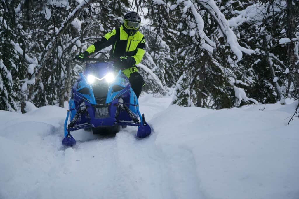 Väl uppe längs leden testar jag en första ”tummen intryck mot styret” AAAAHHHHHH släpper av redan efter någon sekund och glädjetjut ryter innanför hjälmen. Hel**** vilken kraft, upp i knoppen ställer jag mig frågan, Är det för att jag är ovan? Har jag glömt bort hur bra snöskotrar accelererar? Kommer snart till underfund med att det är något speciellt med kraften denna maskin levererar, helt ursinnigs löst.